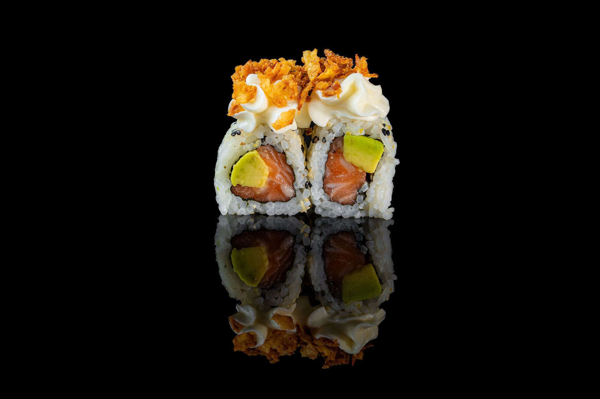 Salmone, avocado, philadelphia, cipolla croccante e sesamo