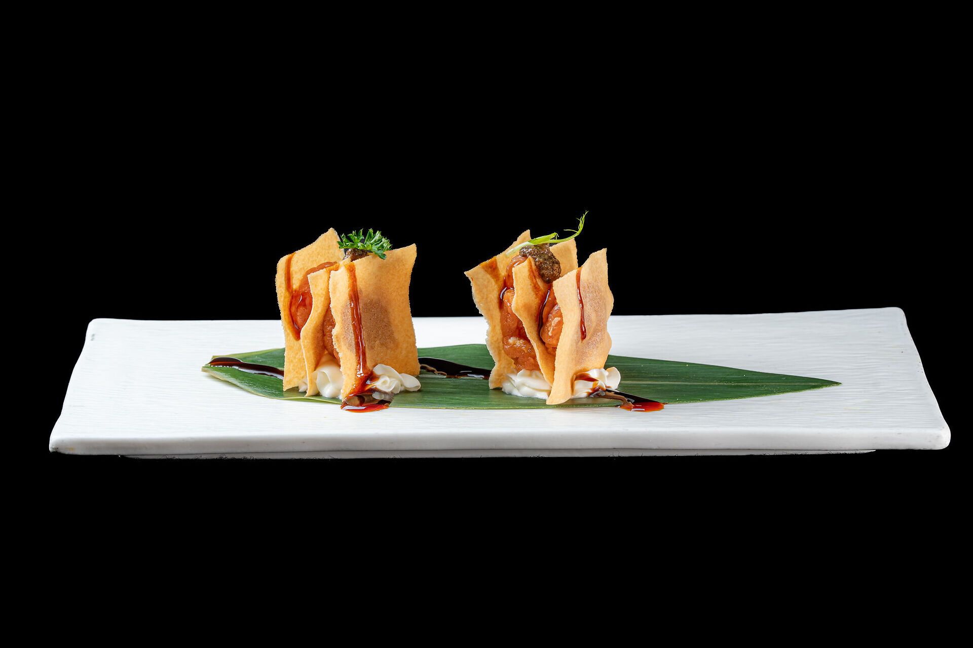 Involtino primavera con tonno crudo, philadelphia, tartufo e salsa teriyaki