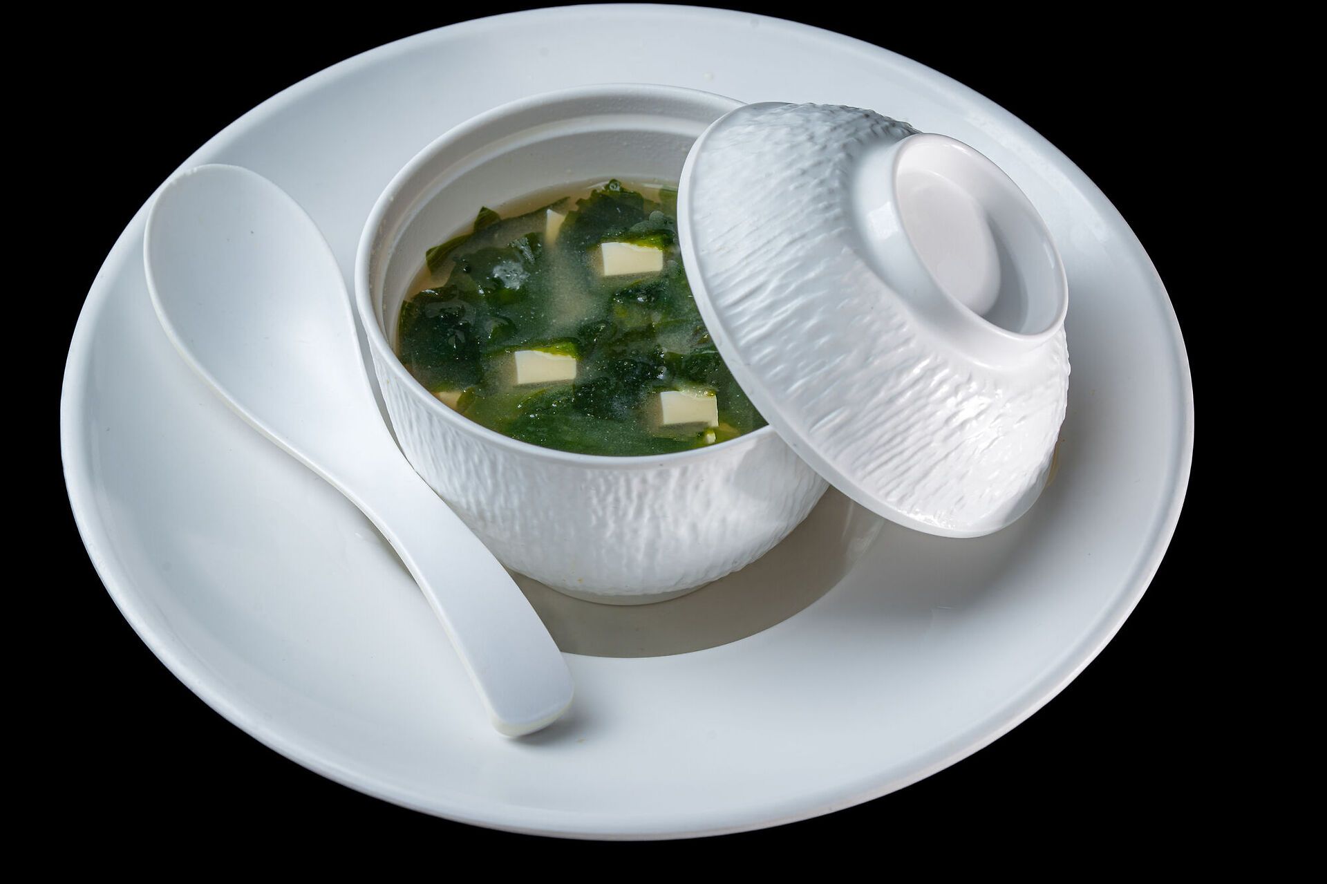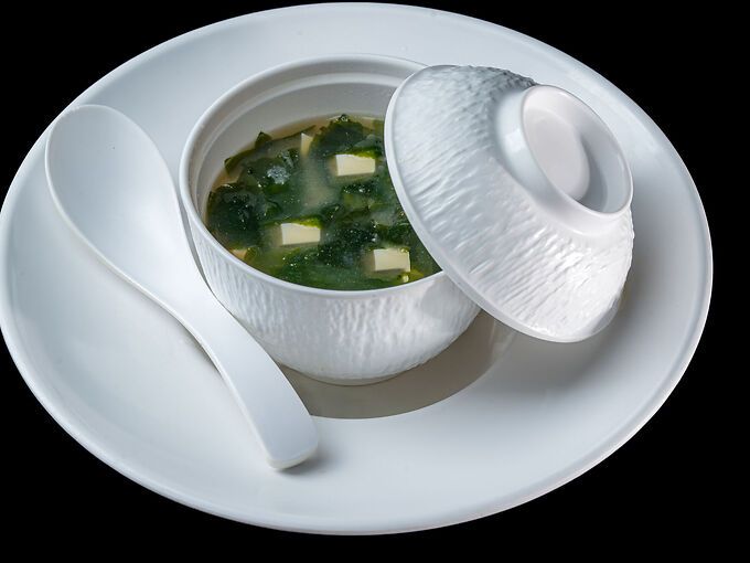 Zuppa di soia con tofu e alghe